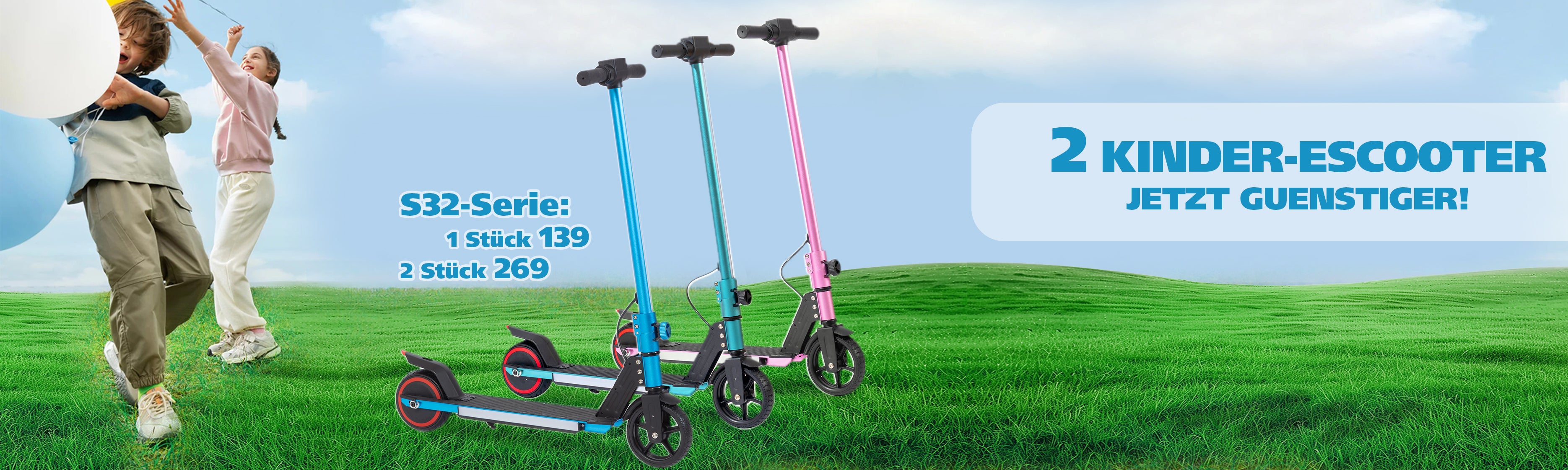 Vankel S32 Cityroller 6.5 Zoll faltbarer Elektroroller für Kinder ab 8 Jahren, 150W Motor, bis zu 8km Reichweite, leichter Elektroroller mit EBS, blau/rosa/grün